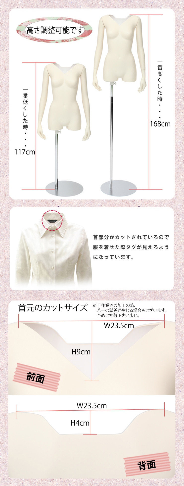商品名:レディス・タグ見せボディ(7号・A・腕あり)